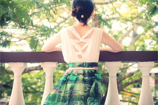 Polka dots, feminine and fun at the same time. I am glad I snapped up this darling dress during the Pazzo half-price bonanza last year. The lovely back detail sealed the deal for me and frankly, this can be worn at any occasion, be it a formal dinner or a shopping trip with girlfriends. With all the sombre monochromatic backdrop of my piano room, I'm pairing it with red nails and my red Cambridge satchel for a splash of colour.