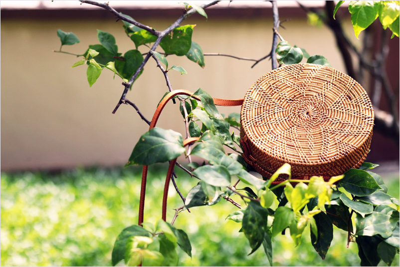 最近這裡的天氣好好,只是偶爾下午會下個雷陣雨。前不久的一個周日,看著陽光好我就帶了腳架跟新入手的藤編圓包到院子裡簡單拍個穿搭。如果你有在Instagram上追蹤時尚趨勢,十有八九你曾在時尚部落客身上看過這款包的蹤影。我也是被這包的無所不在給漸漸洗腦而入手了 XDD 不過說真的,這包還是滿對我味的,無論是大小顏色還是實用性,價格也便宜。這次穿搭我想著好久沒有偏浪漫風穿搭的外拍了,於是搭了這件蜜桃粉色的印花長洋。雖然後來太陽大到我不得不一直躲在樹蔭底下拍(不只是怕過曝,而是樹蔭外我大概全程無法睜開眼睛 囧),但拎著夏天的小包在庭院裡晃,陽光疏疏落落的穿過枝葉繁茂,還是有種歲月靜好的喜悅。